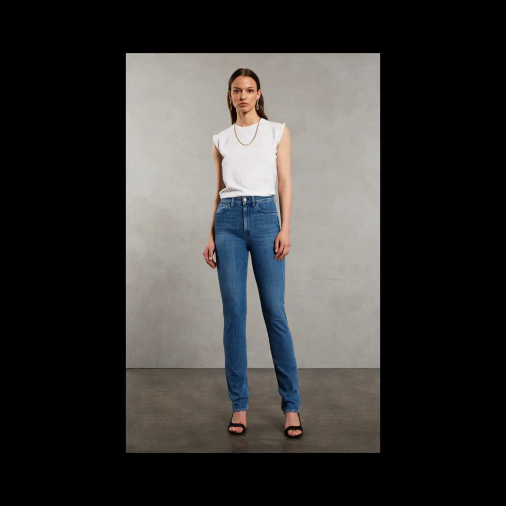 O icónico jeans Maddie está de volta. Uma calça de cintura alta e perna reta feita de lona regenerada e confortável. A cintura destacada e o comprimento perfeito tornam esse estilo adequado tanto para sapatos rasos quanto para salto alto.