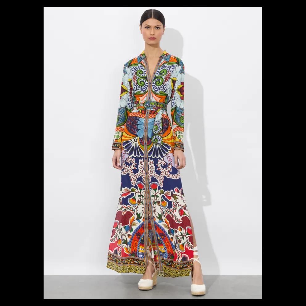VESTIDO T-SHIRT MAXI CHASSIDY. Este maxi estampado é a nossa forma favorita de fazer um vestido-camisa, com o seu cinto removível, construção com gola e mangas compridas. Feito num tecido de viscose sedoso, o Chassidy é uma peça fácil de vestir