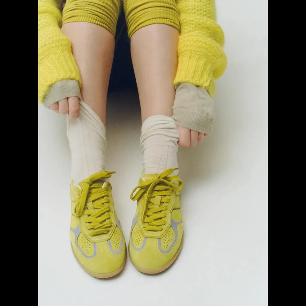 Disponível nas cores mais vivas, o ténis Tb. 490 é fabricado em camurça verde ácida com detalhes contrastantes em roxo. Concebido numa silhueta de cano baixo com solas de borracha, está completo com características clássicas