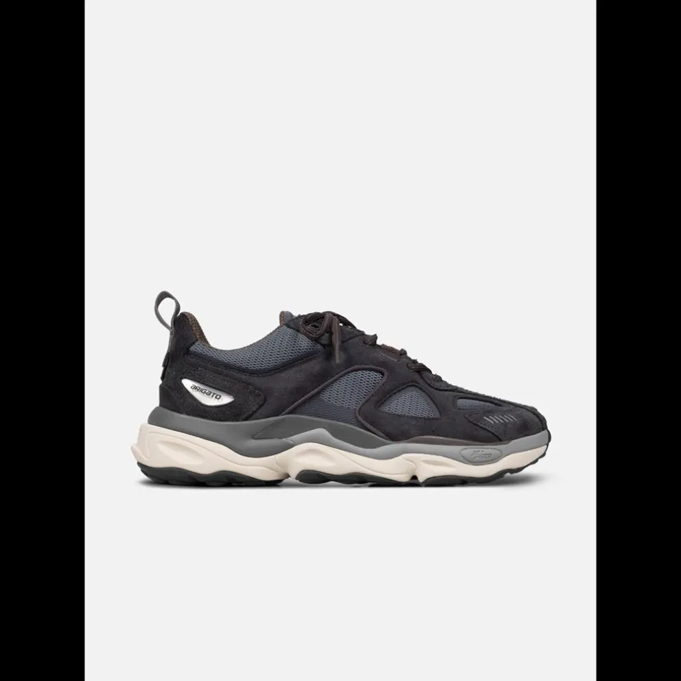 O Satellite Runner é definido por proporções volumosas, mas arejadas. É trabalhado em pele, camurça e malha oval, e apresenta entressolas AXLFoam® de peso pena para um passo ligeiro.
