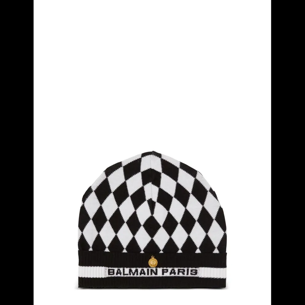Balmain Gorro Diamante Lapelas contrastantes em nervuras finas listradas Logótipo Balmain na frente Botão decorativo 聯Cabeça de Leão聰 em metal dourado