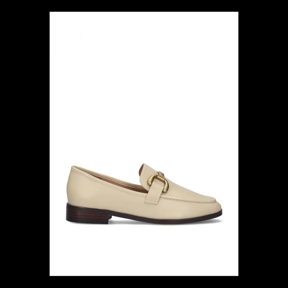 Mocassins femininos de couro. Modelo Zagreb com biqueira quadrada com decoração dourada e salto bloco de 2,5 cm