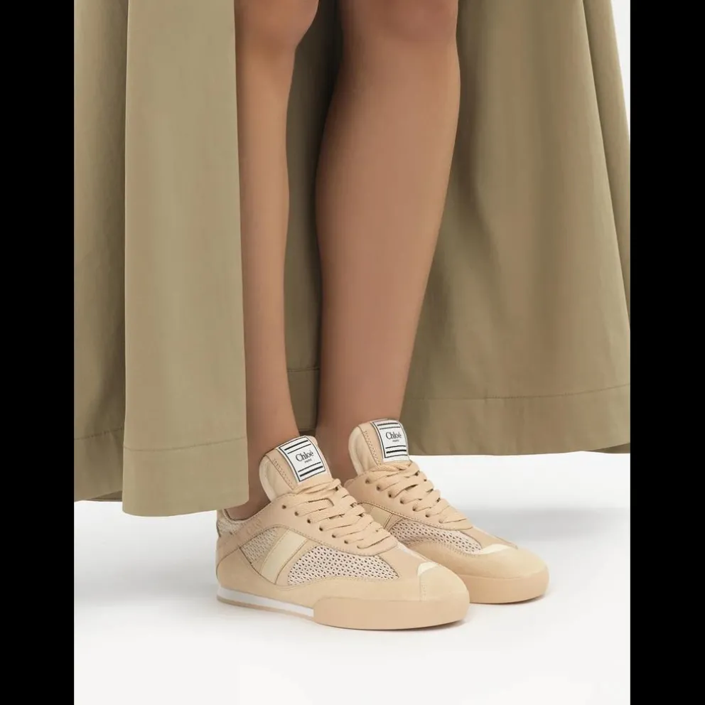 Inspirados no mundo do ballet e do boxe, estes tênis Chloé Kick são feitos de malha reciclada e camurça macia.