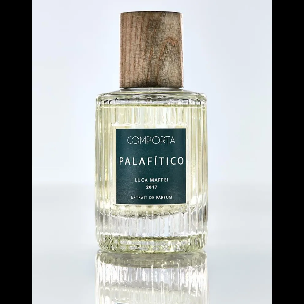 Sândalo, óleo e balsâmico, odores que nos remetem para o universo do belo Cais Palafítico da Carrasqueira, com a madeira batida pela água salgada.