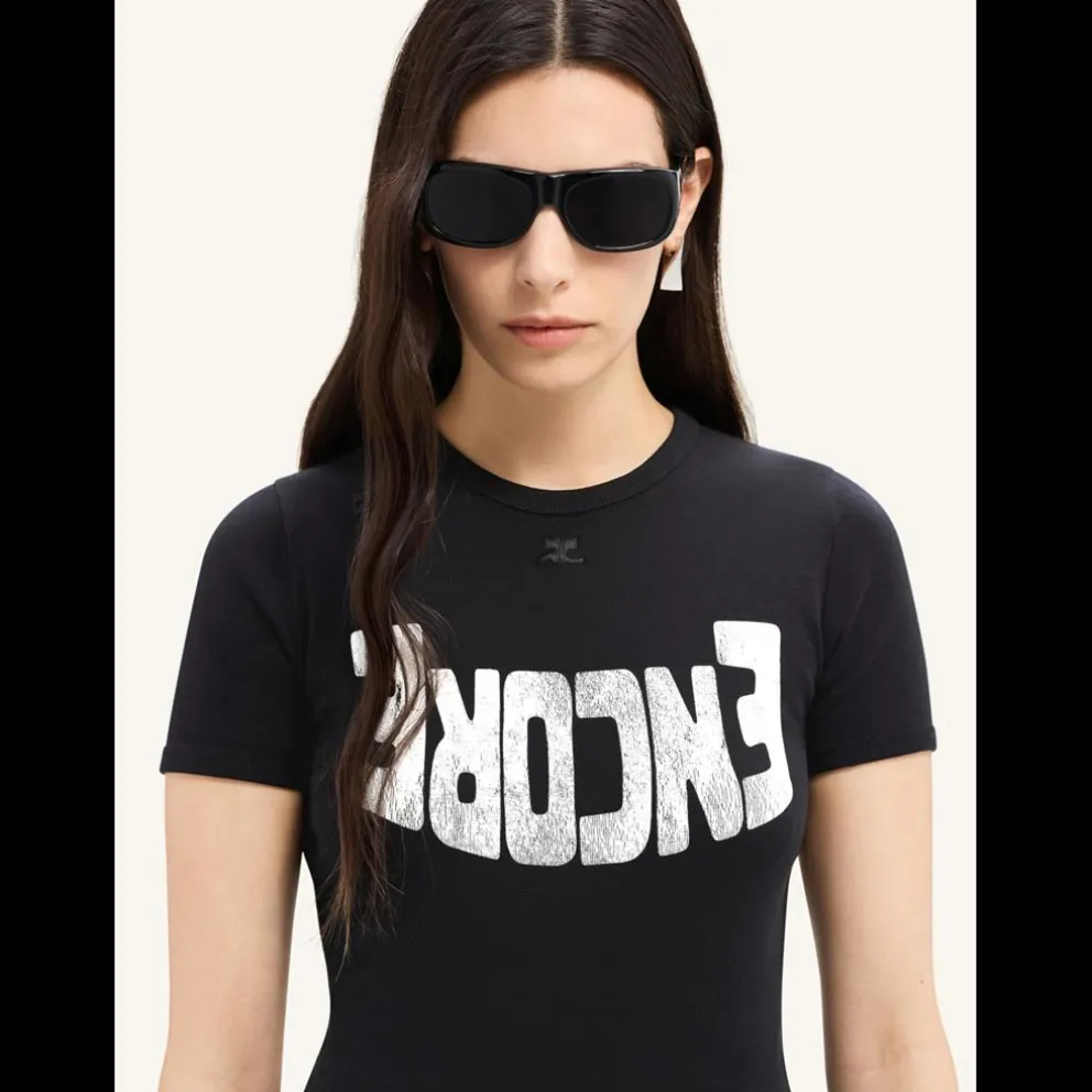 T-shirt justa de manga curta com logótipo AC e estampado 聯Encore聰 na frente.