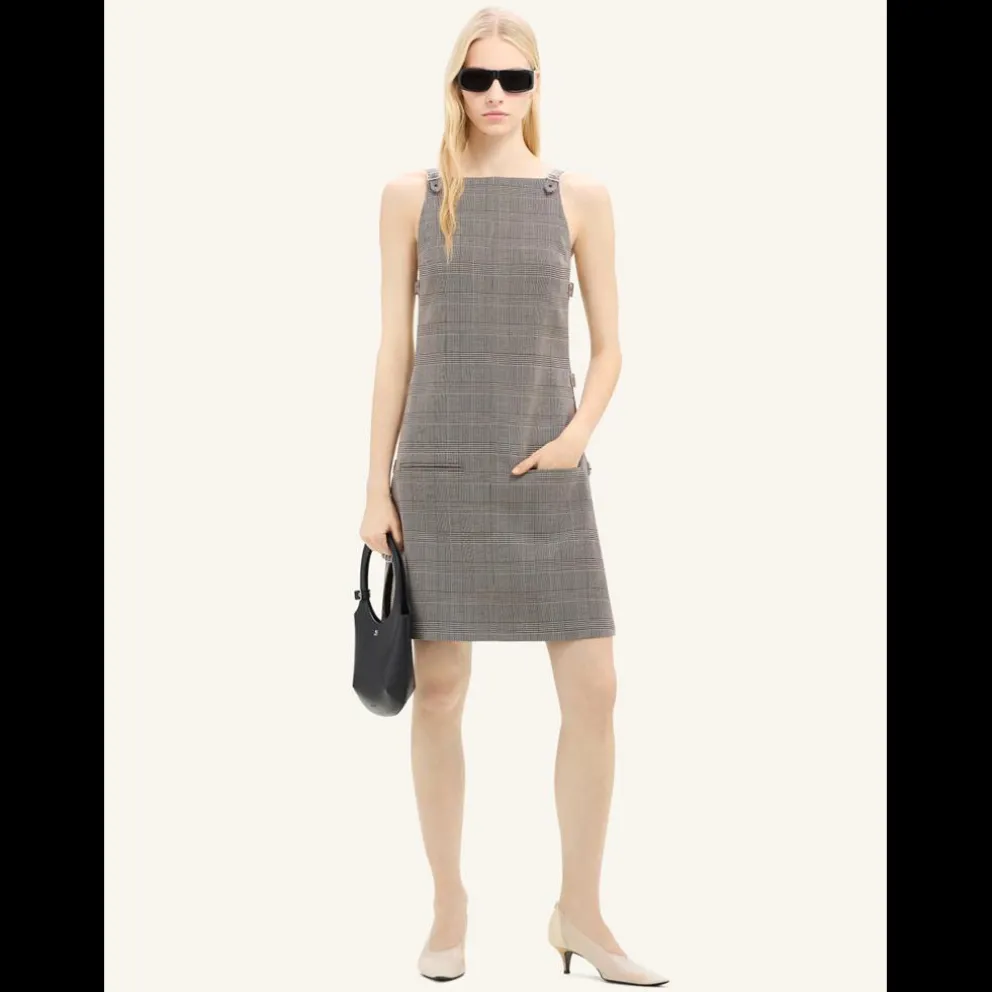Minivestido trapézio sem mangas Príncipe de Gales com várias faixas, dois bolsos frontais debrum e logótipo AC metálico na lateral. 54% lã, 46% polyester