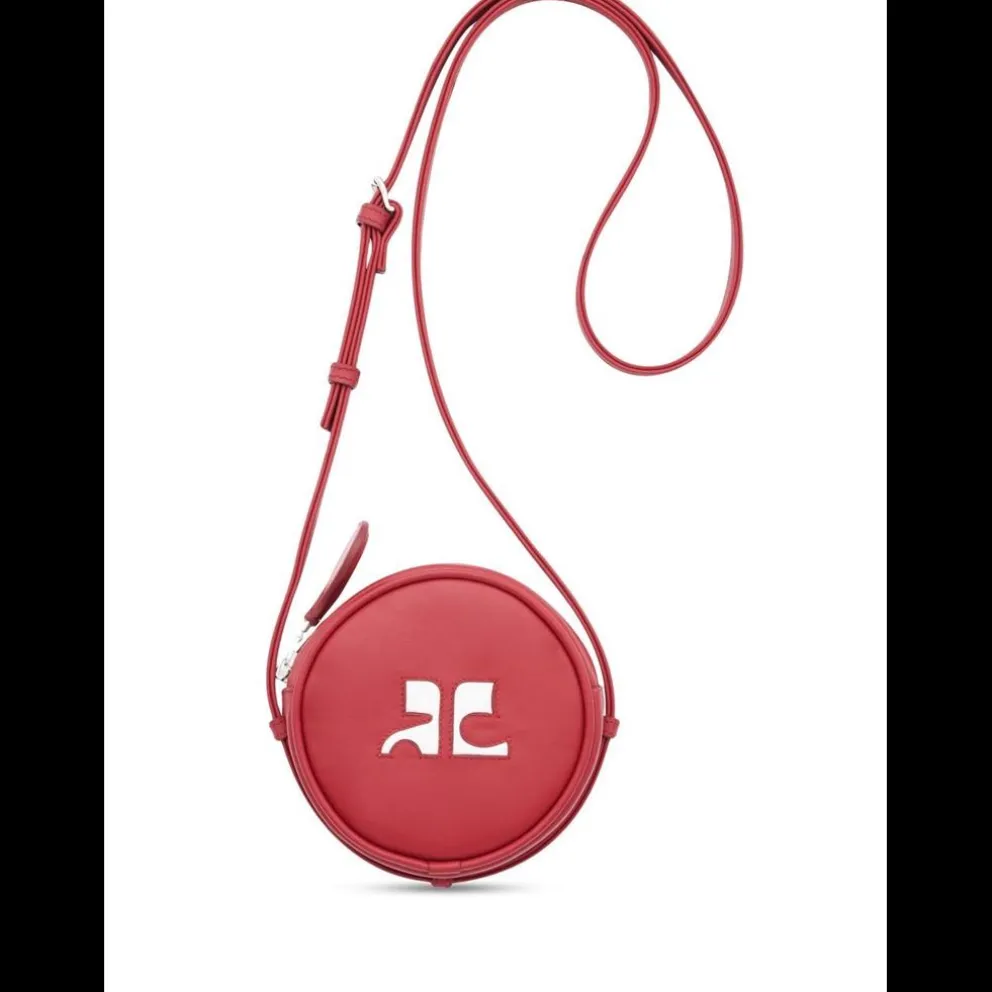 Bolsa em pele Reedition Circle. Feita em pele lisa e incrustada com o nosso logótipo exclusivo AC na frente, a Courrèges apresenta para esta coleção Reedition uma nova versão da sua mala redonda com alça ajustável. 11cm
