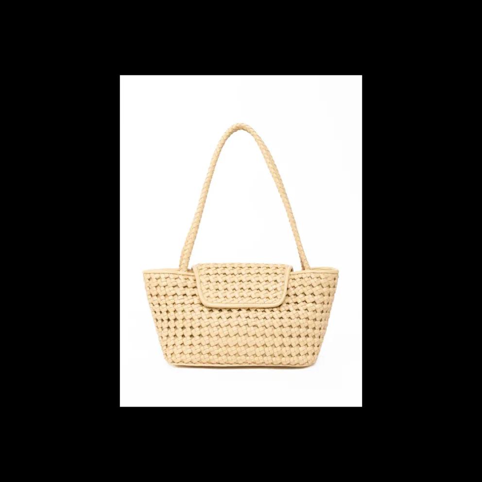 Courrier Tote Woven Leather. Uma bolsa estruturada com aba magnética