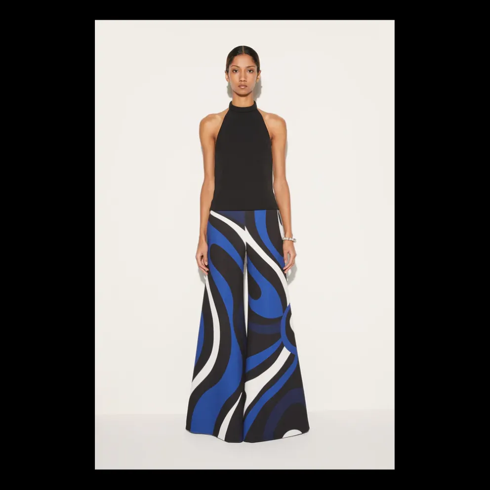 O estampado Marmo envolve as calças deste macacão de pernas largas em tons redemoinhos de azul. Relativamente simples, a silhueta cady vai de um top acolchoado com decote redondo a uma parte de baixo estilo palazzo de inspiração retro.