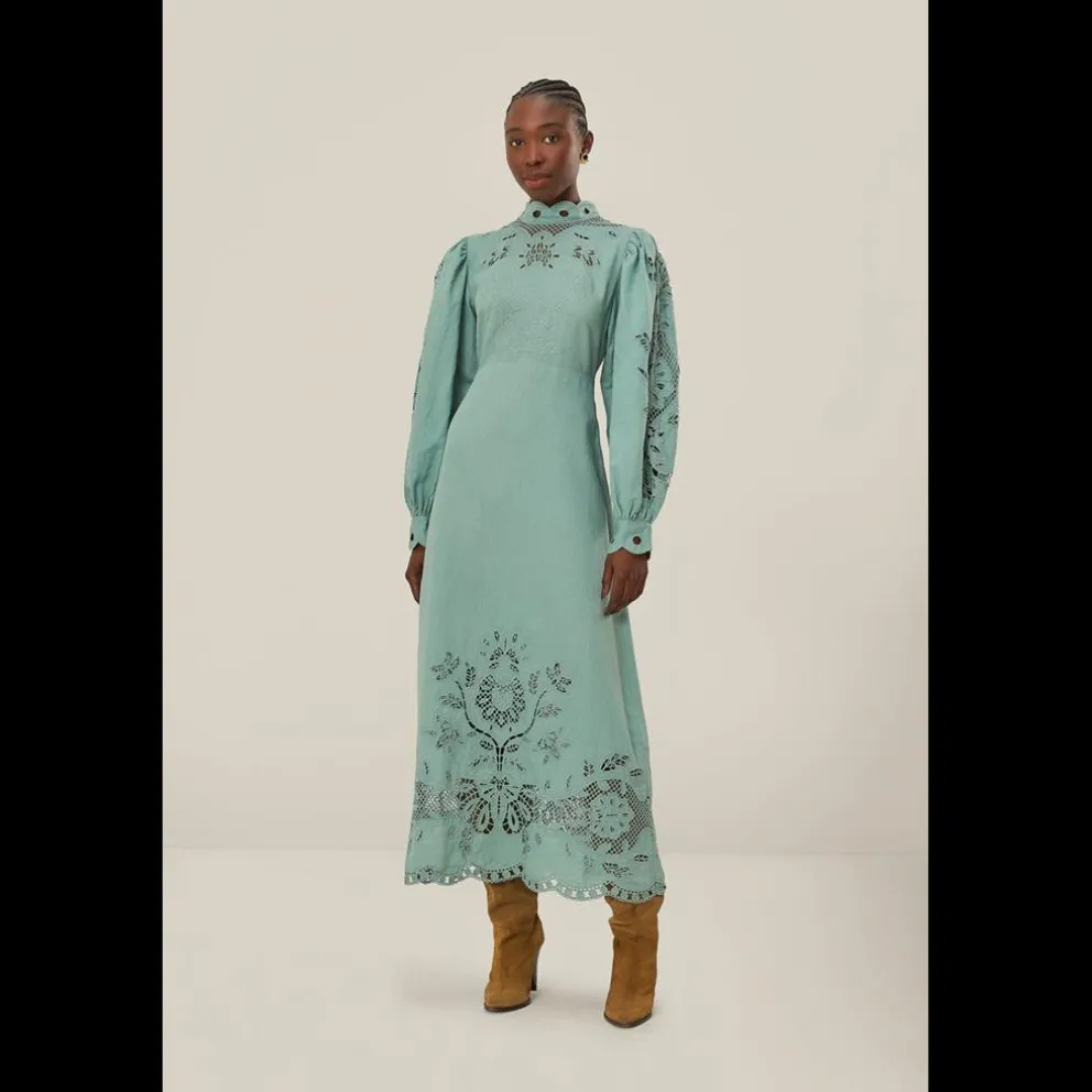 Abrace a elegância com o Vestido Midi Azul de Manga Longa, uma criação querida que combina o conforto com o estilo característico da FARM Rio. Um encantador decote alto e graciosas mangas compridas. 53% LINEN 47% COTTON