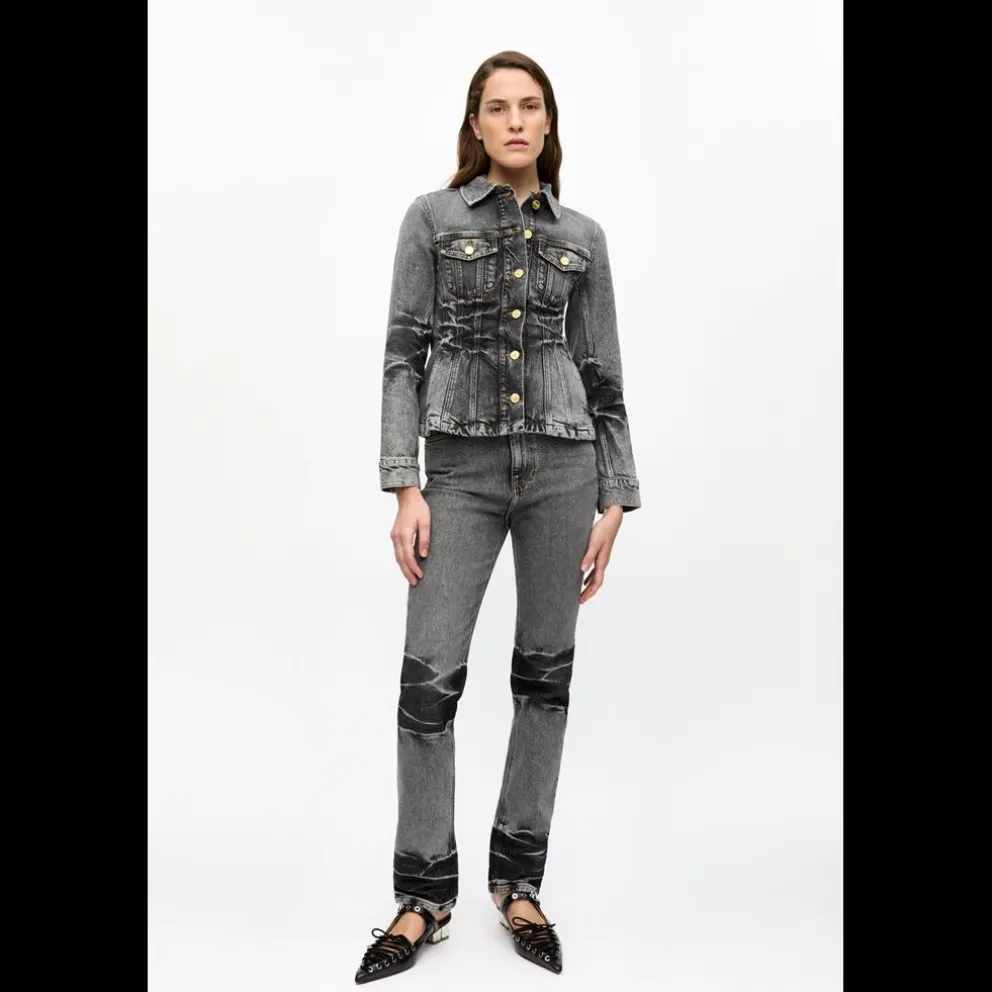 Calça de ganga em denim stretch preto lavado com corte reto, 5 bolsos e fecho de correr e botão. O jeans apresenta o logótipo da GANNI no bolso traseiro. Este denim contém Viscose fabricado com CIRCULOSE®, um material de última geração