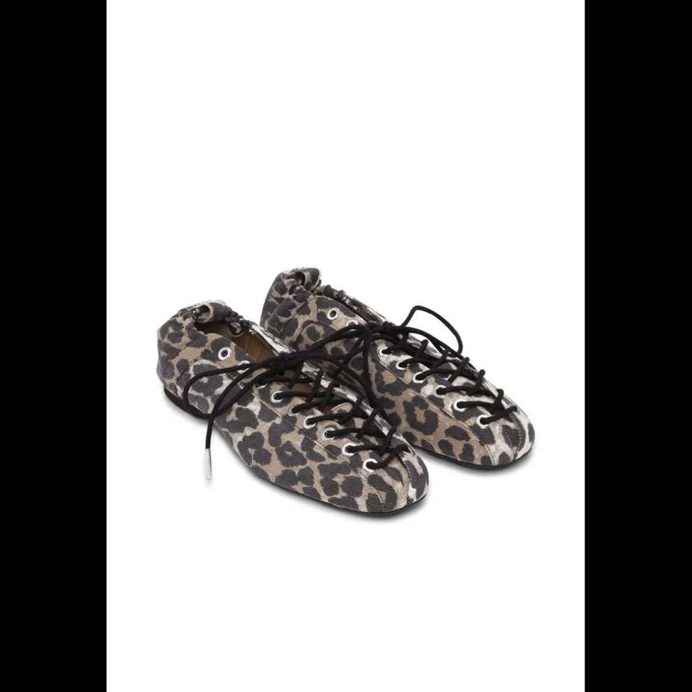 Inspiradas nas botas de atar dos anos 20, estas sapatilhas de ganga com padrão leopardo dão continuidade ao legado da nossa querida Buckle Ballerina. Feitas de uma mistura de algodão orgânico, estas bailarinas apresentam ilhós de metal exclusivos
