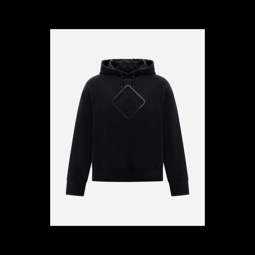 Sweatshirt em sarja macia de puro algodão de gramagem média. Perfeita para as mudanças de estação, esta peça aconchegante apresenta um capuz e um grande logótipo Herno em relevo com um estampado de cetim tom sobre tom.