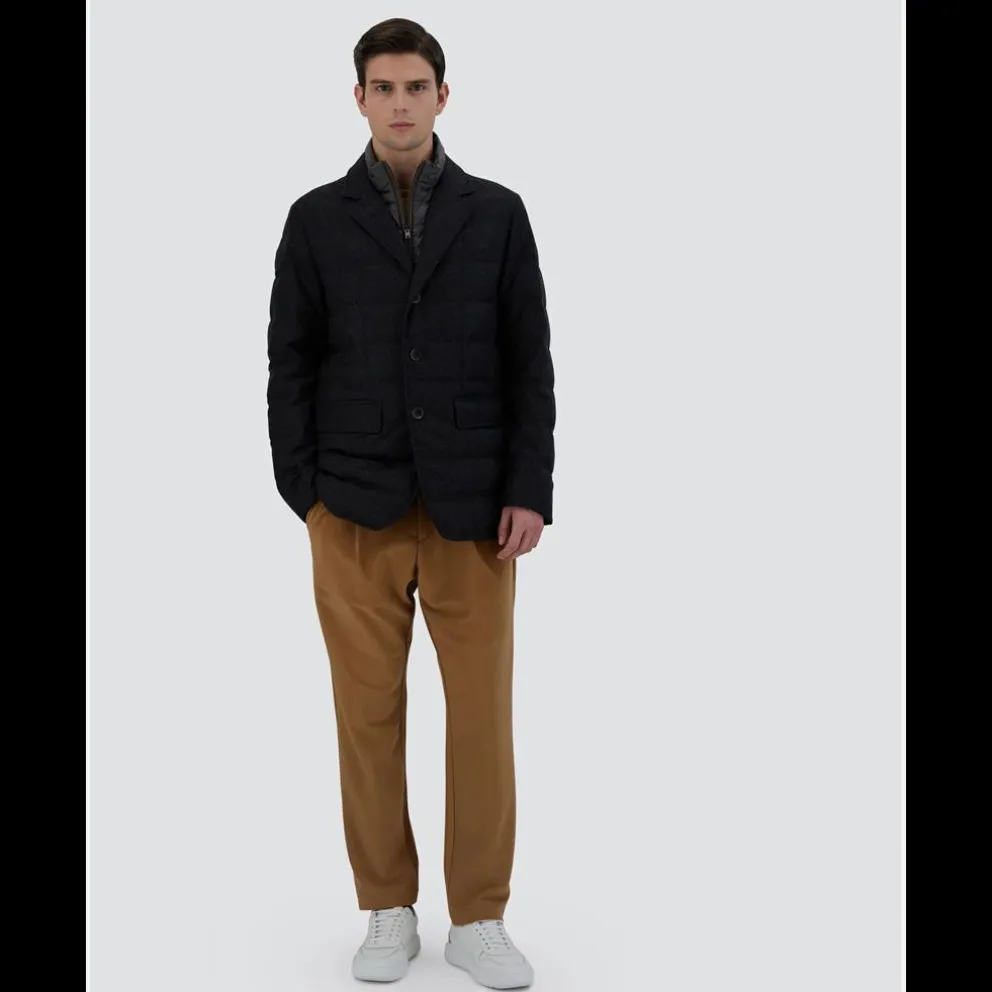 Blazer em flanela macia e quente com mistura de lã merina e caxemira com motivo Glen Plaid. O tecido é tratado para o tornar resistente à água, ao pó e às marcas.