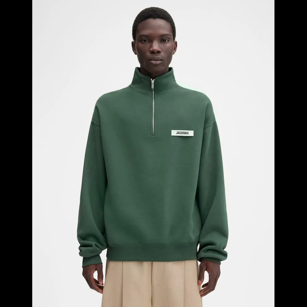 Camisola com fecho – Ajuste descontraído – Velo de algodão Gola com fecho – Mangas compridas – Punhos e bainha canelados Logótipo de gorgorão no peito