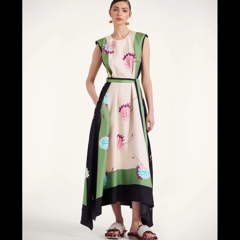 Aumentamos o drama com uma saia assimétrica que vai até ao chão, mas sinta-se à vontade para usar um cinto se for o seu estilo. Deixe o seu espírito celestial ser encantado por este estampado Derby, uma peça deslumbrante e atraente feita à mão