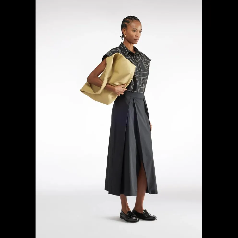 SAIA COM PLISSADO. 64% ALGODÃO 31% POLIAMIDA 5% ELASTANO