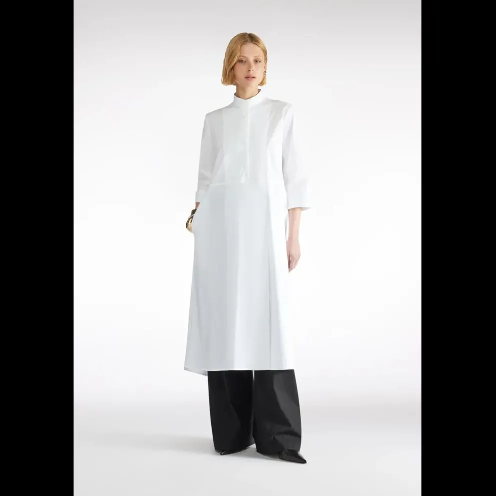 VESTIDO COM GOLA COREANA. 64% ALGODÃO 31% POLIAMIDA 5% ELASTANO
