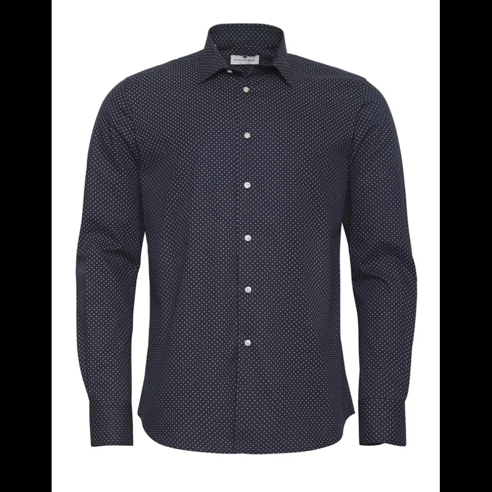 Camisa manga comprida no modelo slim fit com colarinho curto