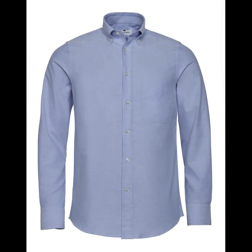 Camisa em algodão oxford. Colarinho com botões. Manga comprida