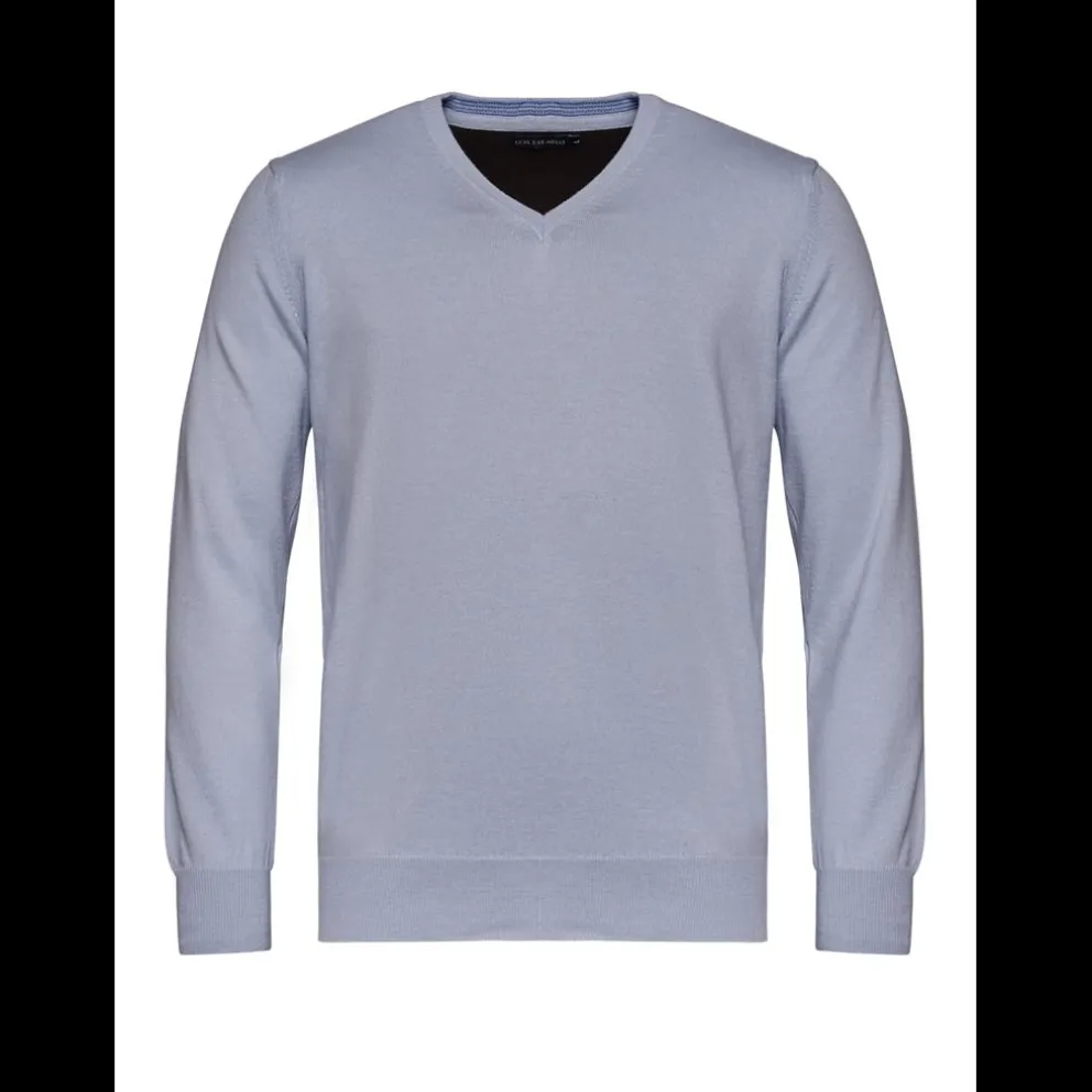 Camisola decote em V em algodão e cachemira