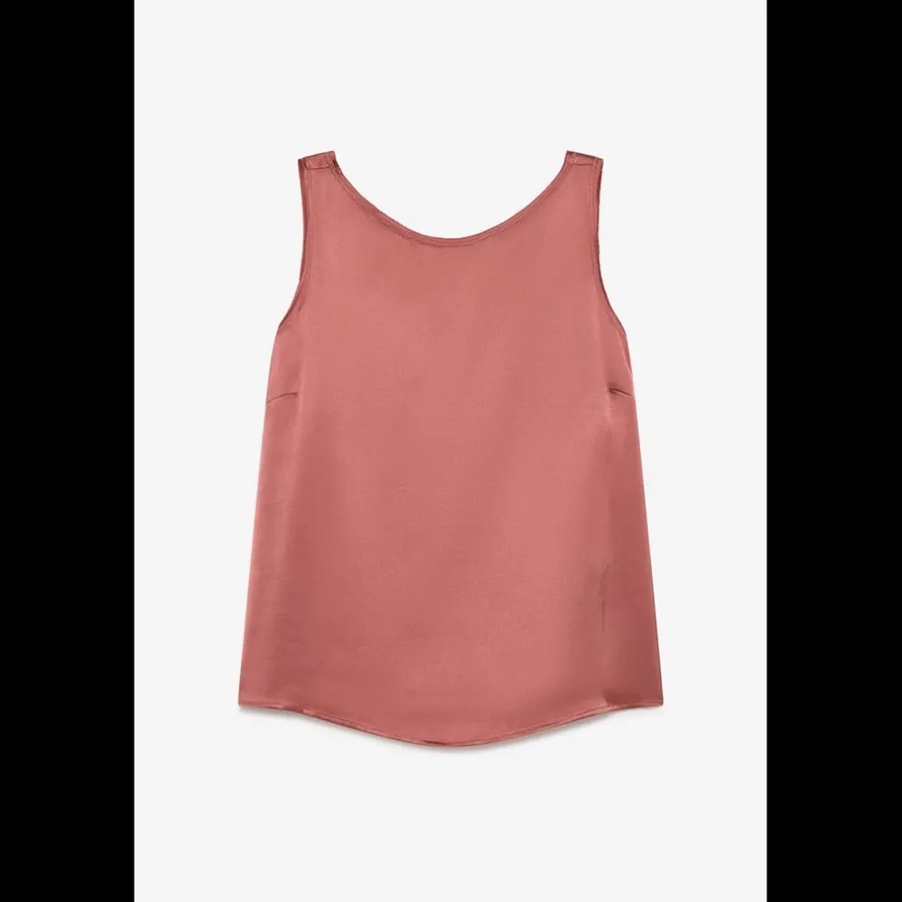 Simples e delicado, este top de cetim brilhante envolve o corpo com elegância. O tom terracota torna-o aconchegante e convidativo, enquanto o design, que deixa os ombros expostos, acrescenta um toque de sedução natural.