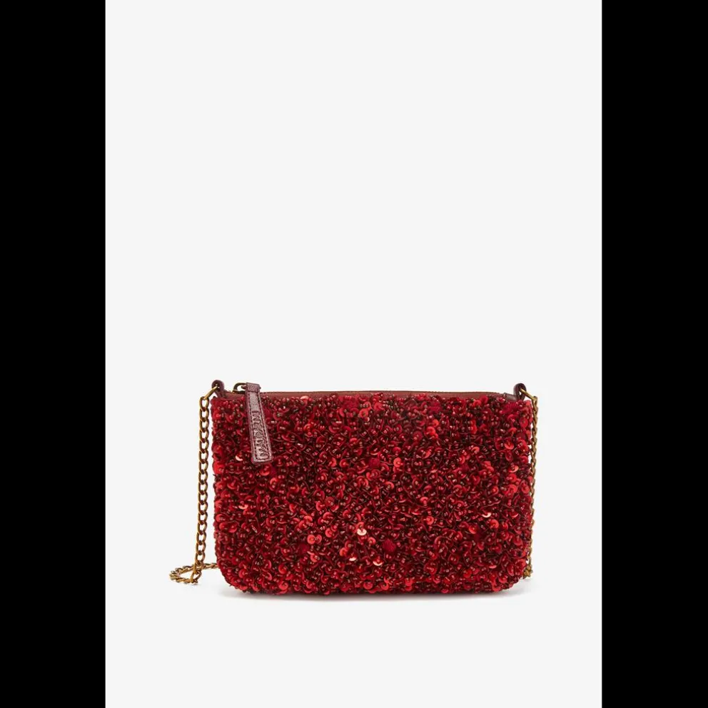 21x14x0,5cm. Bolsa em missangas e lantejoulas, inteiramente bordada à mão com ? com prática alça de ombro em corrente. Apresentando combinação de cores em tons de inverno.