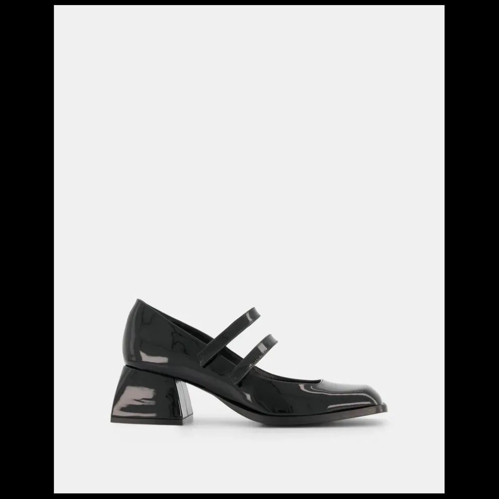 Sapatos Mary-jane em verniz com fecho de velcro com tira dupla. Forro em pele. Tacão: 50 mm.