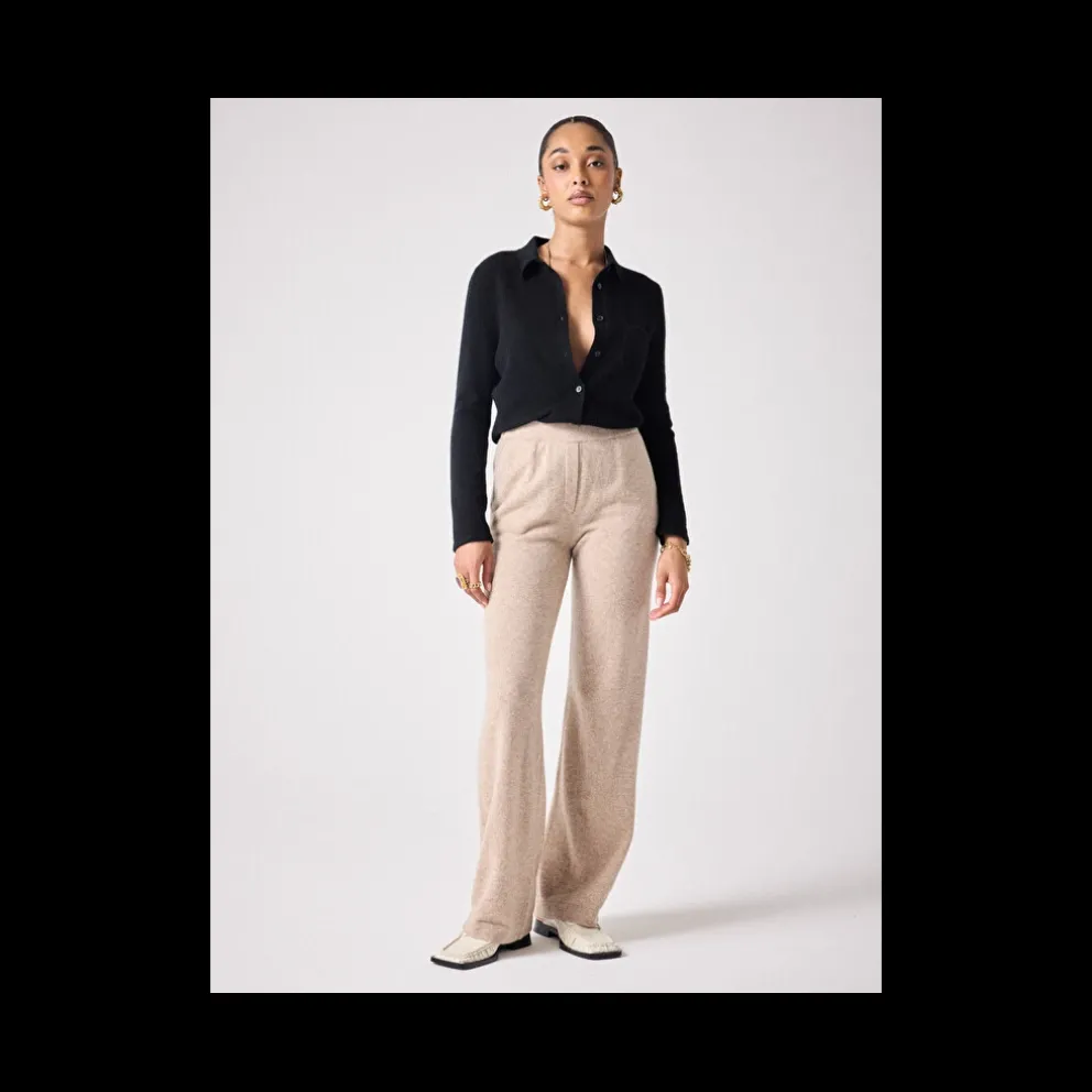 Calça reta de caxemira para mulher – Cós elástico – Trompe l’oeil voar – Bolsos italianos – Corte reto Calça 100% caxemira 2 camadas 12XL