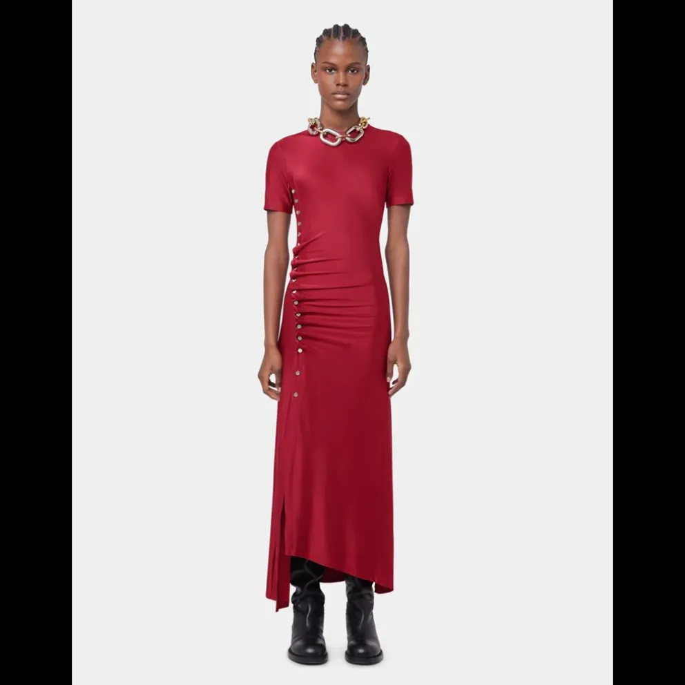 Vestido longo drapeado com mangas curtas em jersey de viscose.