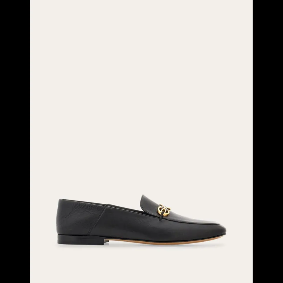 A energia masculina encontra a coragem feminina neste mocassim ultra-chique. O couro sumptuoso é envolvente, enquanto o icónico Gancio dourado no peito do pé indica um estilo sofisticado. Dobre o calcanhar para baixo e use como mule. salto 1cm