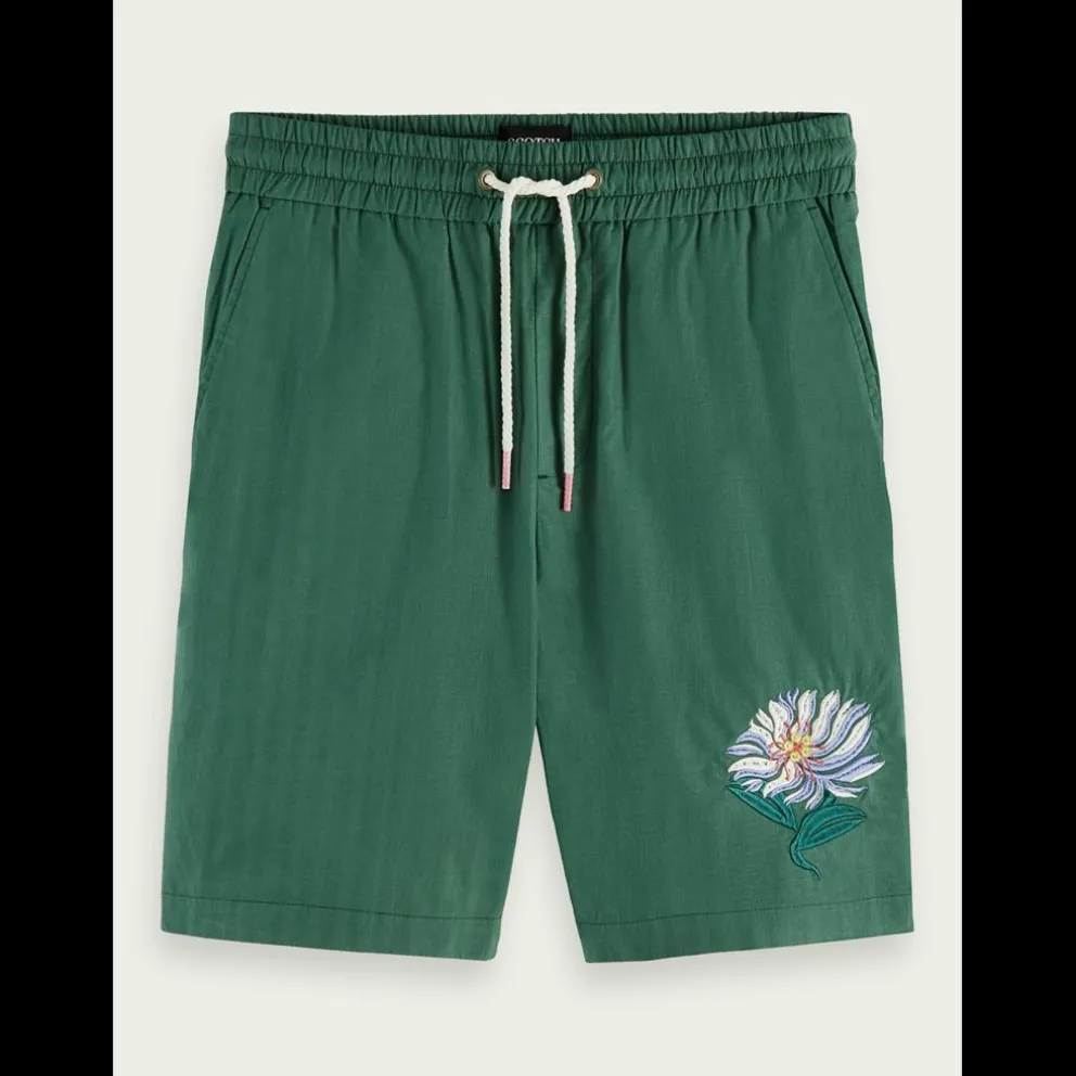 Estes shorts têm cintura com cordão elástico e bordados florais inspirados no tema Sakura desta temporada. São ideais para qualquer ocasião e têm práticos bolsos laterais. Esta roupa contém sumaúma FLOCUS聶