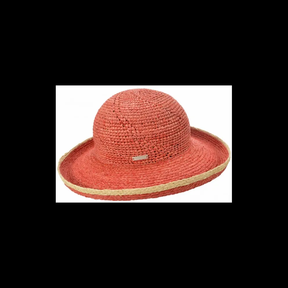 Este atrevido chapéu feminino da Seeberger em palha de ráfia de alta qualidade pertence a todos os armários. A coroa de crochê permeável ao ar torna confortável de usar, enquanto a aba protege do sol.