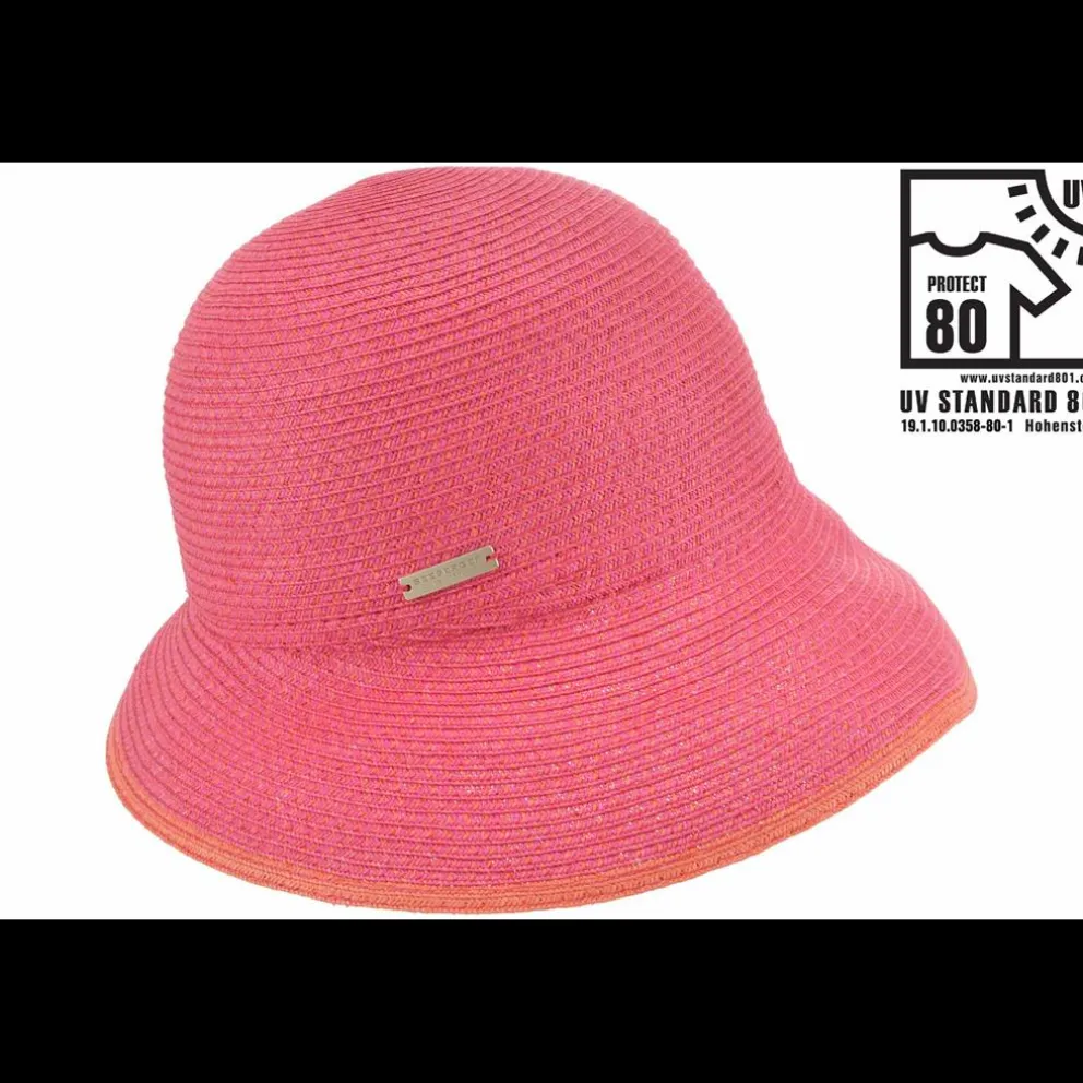 Chapéu feminino feito de palha de papel da Seeberger tem um acabamento tão macio e quebrável que pode ser facilmente colocado na mala e ainda mantém a forma. Usado, o chapéu de sol simples inspira com sua aba larga e assimétrica na frente. Aba 9cm