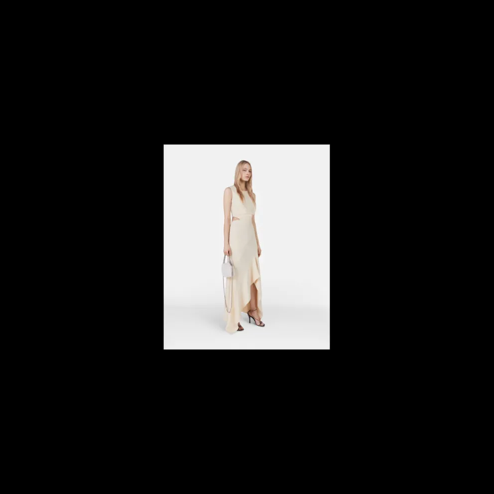 A natureza é uma inspiração eterna, com o outono de 23 enfatizando o amor pelas árvores. Este vestido creme amanteigado é feito de viscose amiga da floresta com uma bainha fluida e assimétrica. Feito com polpa de madeira certificada pelo FSC rastreáv