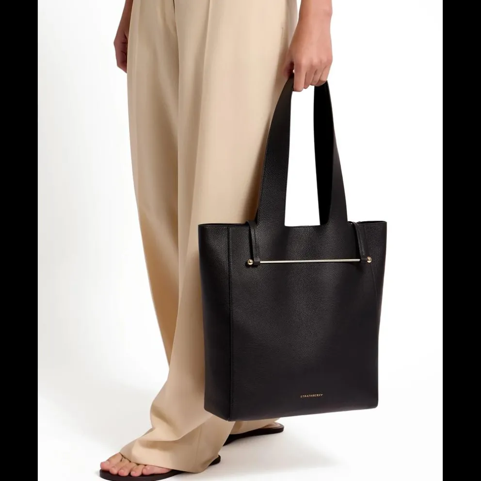 A Melody Tote é uma interpretação exagerada e mais suave do fólio de música vintage que inspirou a nossa icónica Strathberry Tote. Apresentando a nossa exclusiva Music Bar como fecho em tiras largas e confortáveis. 12x34x36cm