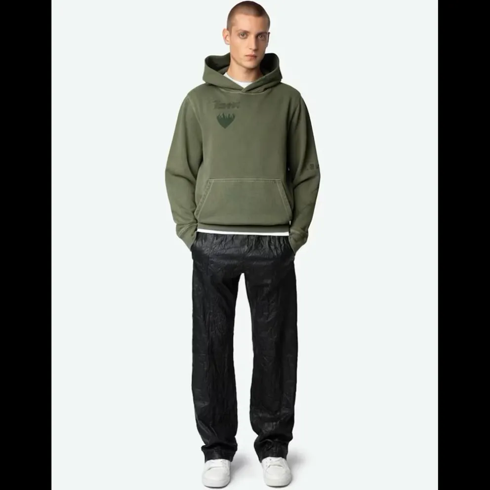Sanchi Sweatshirt. Sweatshirt com capuz em algodão com efeito desgastado, confecionada em algodão orgânico, com mangas compridas e desenhos de tatuagens estampados e bordados